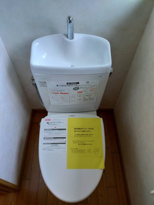タンクとウォシュレットの一体型の20年以上の古いタイプだったので、補修部品もなく、メンテナンスサービスも終了していました。
