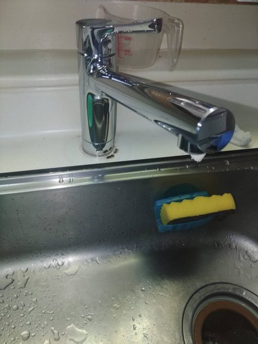点検の末、台所蛇口レバー部分の部品の不良による水漏れ。