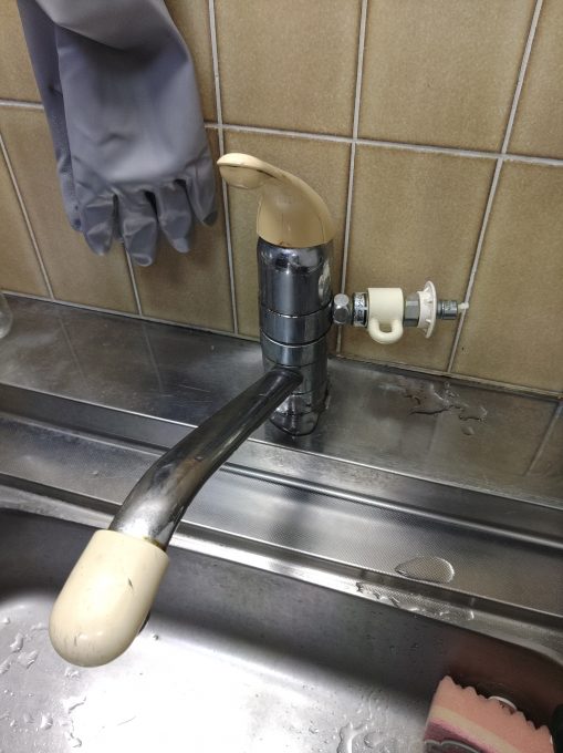 食洗機はもう使わないとのことで分岐のないタイプの蛇口に交換することになりました。