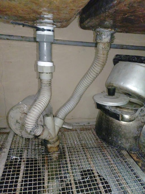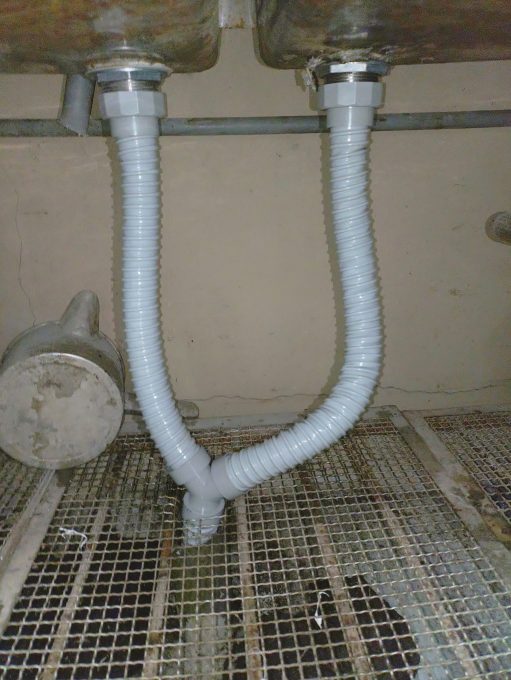 台所シンク排水栓が古く、現行のジャバラホースを接続する部分のサイズが合わないため、台所シンク排水栓とジャバラホースの交換を、ご提案させて頂きました。