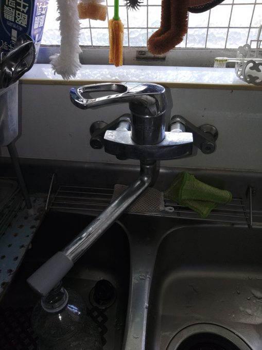 家の元栓を締め、古い蛇口を給水管を破損させないよう慎重に取り外し、新しい蛇口を取り付けしました。
