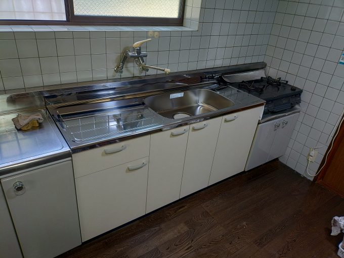 「流し台本体の状態も良くないので、交換時期ではありますね。」とお伝えしたところ、「じゃあこの際なのでキッチン交換してもらえますか?」とご依頼を受けました。
