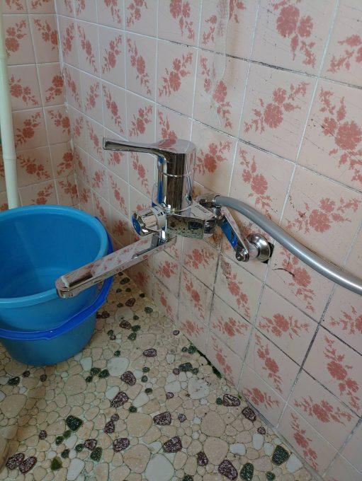 現場にて洗濯蛇口の吐水口から水がポタポ…